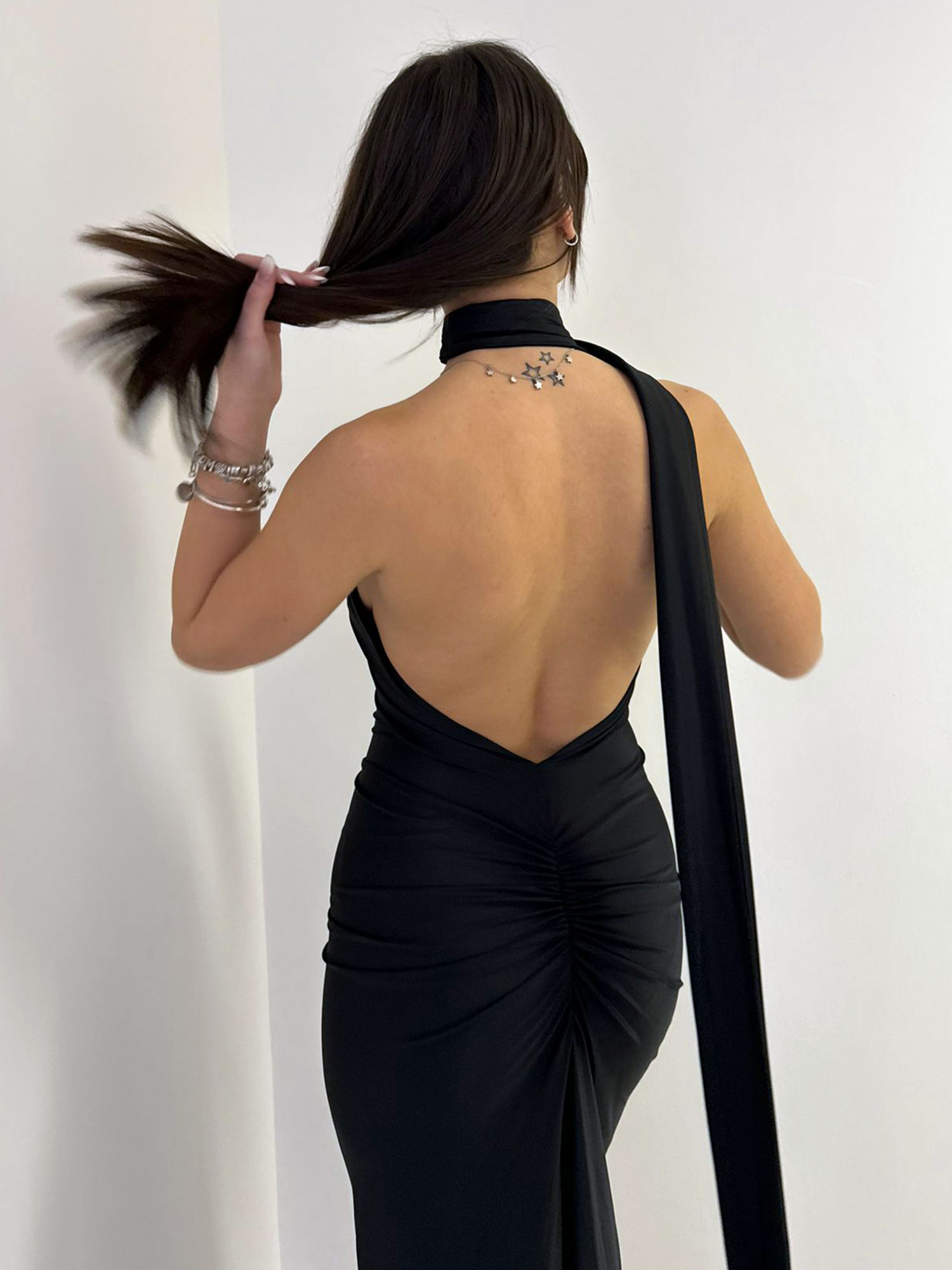 - Dettaglio Posteriore: Schiena scoperta con una seducente apertura.