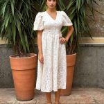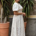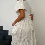 Questo elegante abito bianco, impreziosito da un ricamo floreale in rilievo, è il capo ideale per chi desidera un look romantico e sofisticato. Realizzato in un tessuto leggero e traspirante, perfetto per occasioni speciali. La scollatura a V dona un tocco delicato e femminile, mentre le maniche a sbuffo conferiscono volume e una silhouette raffinata. Il taglio in vita, regolabile con un laccetto sul retro, permette una vestibilità versatile, che si adatta facilmente a taglie dalla 38 alla 42, garantendo comfort e stile. La lunghezza midi lo rende particolarmente adatto a eventi formali come cerimonie, matrimoni o feste estive. Il ricamo floreale, combinato con il design morbido e romantico, richiama uno stile vintage, ma con un tocco moderno. Questo abito è una scelta perfetta per chi cerca eleganza e femminilità in un unico capo.