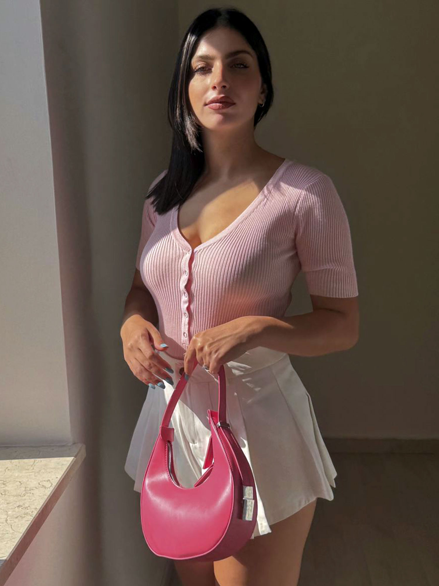 Aggiungi un tocco di eleganza e femminilità al tuo guardaroba con il nostro body a maniche corte in rosa pastello. Realizzato in tessuto morbido e elasticizzato, questo body si adatta perfettamente alla tua silhouette, offrendo comfort e stile in ogni occasione. Il design presenta una scollatura a V con bottoni decorativi sul davanti, che aggiungono un dettaglio chic e raffinato. Perfetto da abbinare a gonne, pantaloni o pantaloncini, è ideale per creare look sofisticati e versatili, dal lavoro agli aperitivi serali.