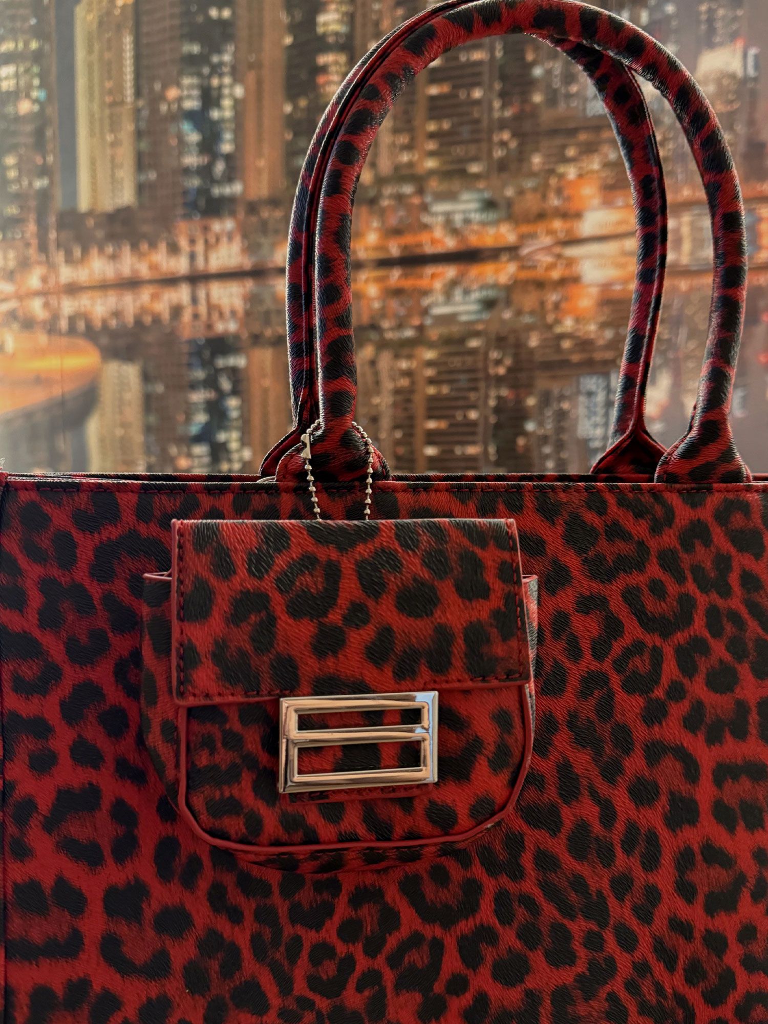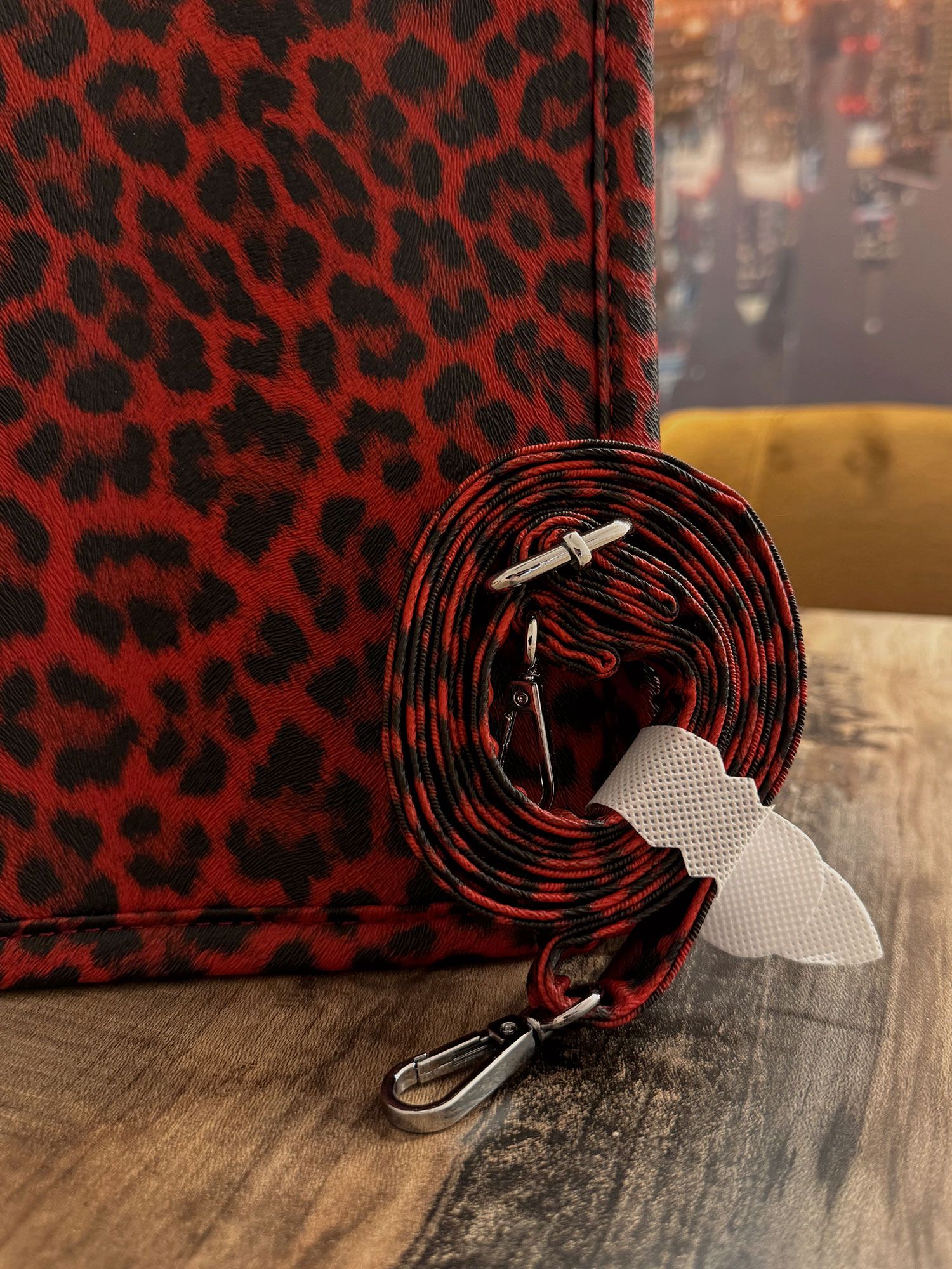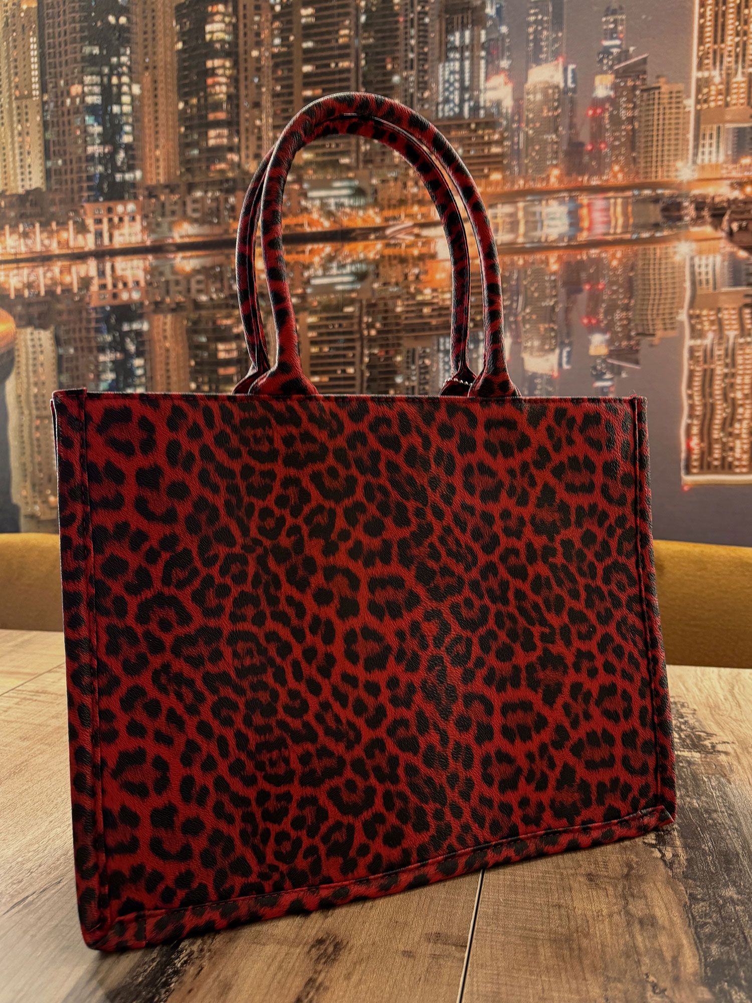 Questa borsa tote a fantasia leopardata rossa e nera è un vero statement di stile. Elegante e spaziosa, combina design audace e funzionalità, con un pratico doppio manico per una portabilità versatile. Completa di una pochette coordinata, ideale per organizzare i tuoi piccoli oggetti o da usare separatamente, è perfetta per affrontare con stile ogni impegno quotidiano, dal lavoro al tempo libero. Un accessorio irresistibile per chi vuole distinguersi con carattere.