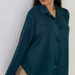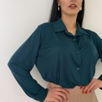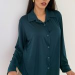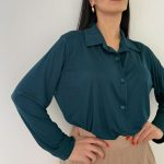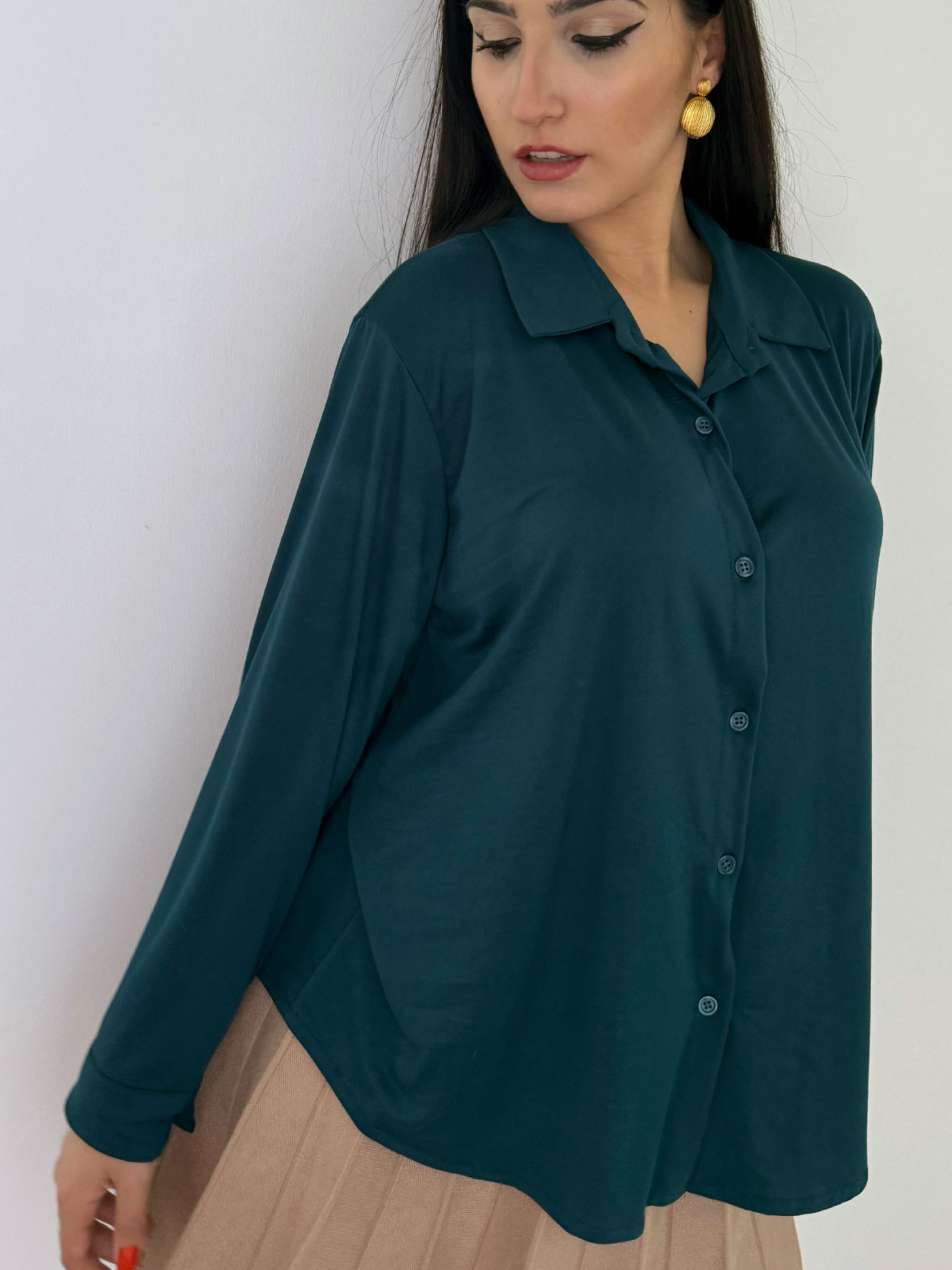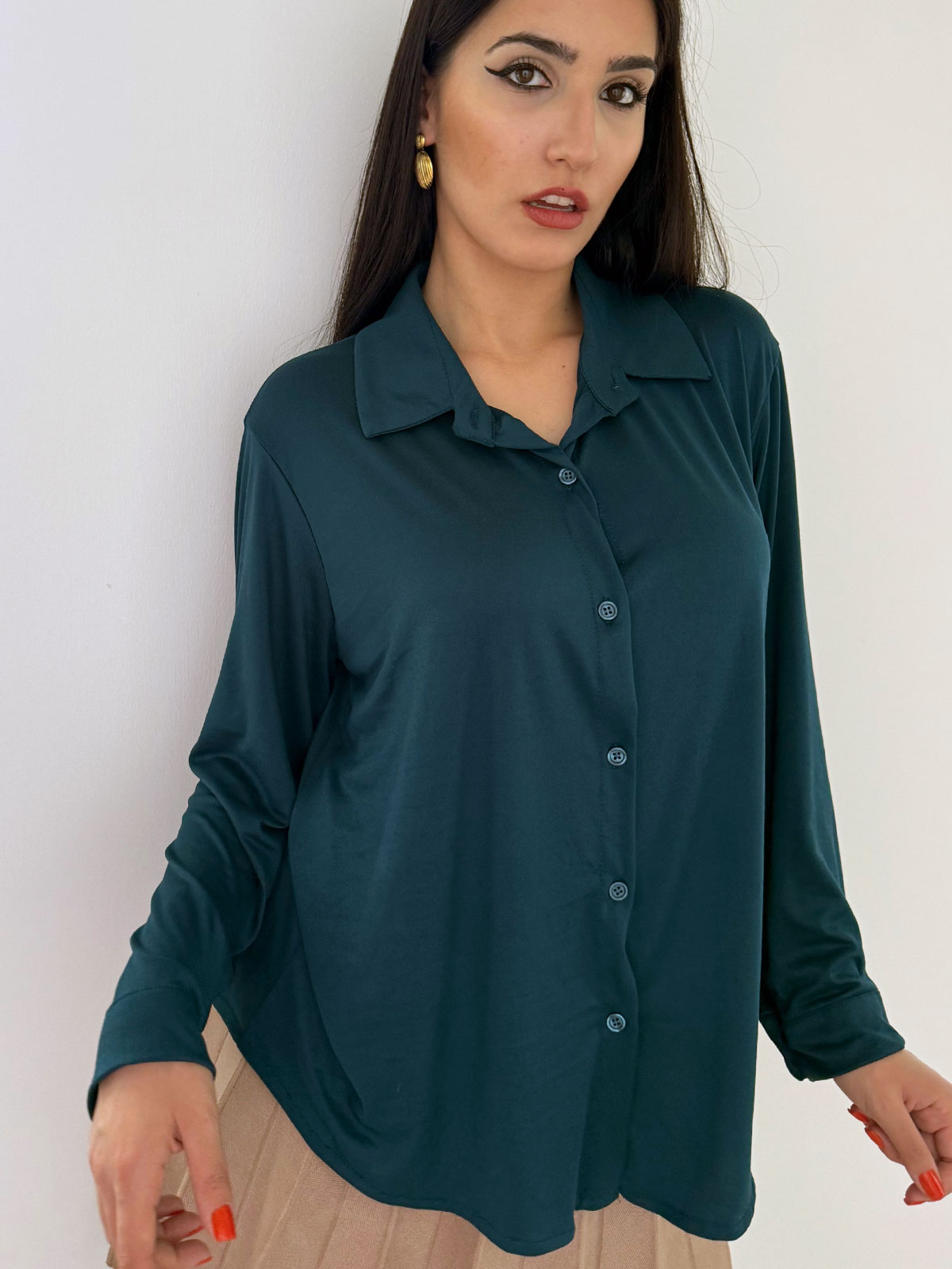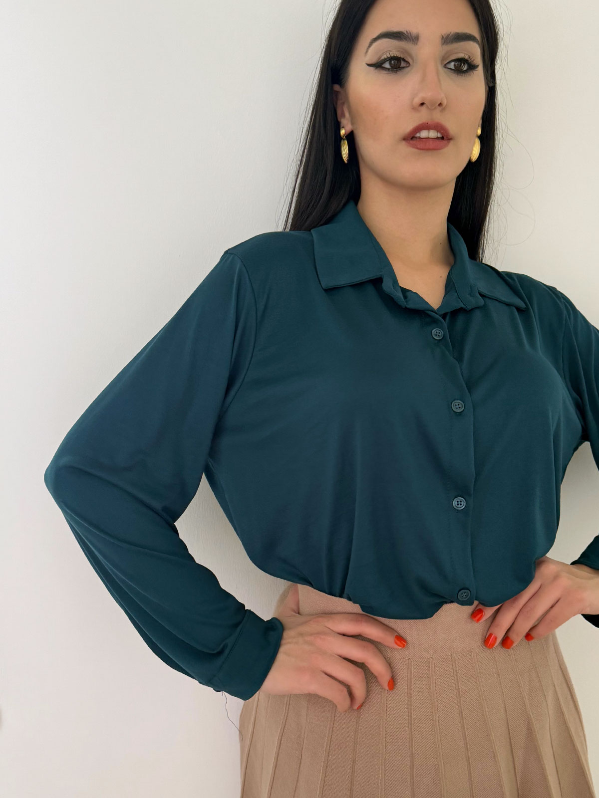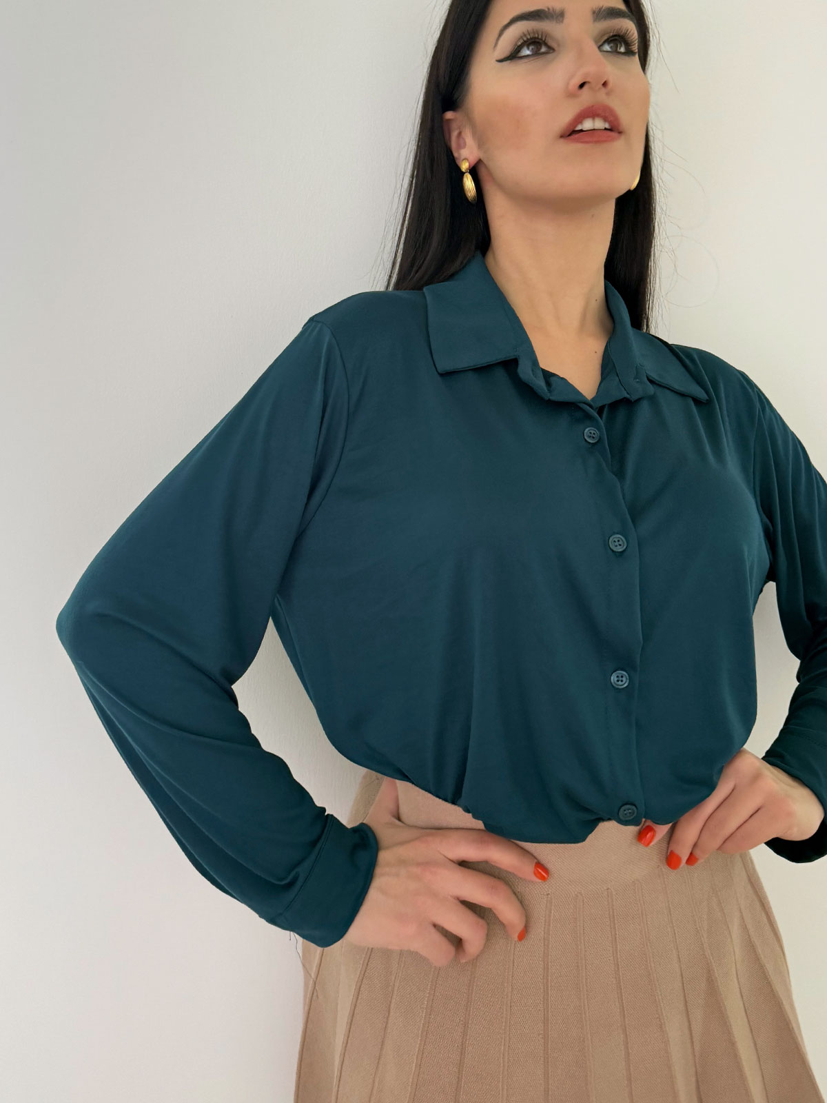 CAMICIA IN MAGLIA ELASTICIZZATA VERDE PETROLIO