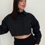 Questa camicia nera presenta un design moderno e versatile, perfetto per diverse occasioni, dal casual al semi-formale. Realizzata in cotone offre comfort e stile in egual misura. Applicazioni decoro di brillantini su tutto il capo.