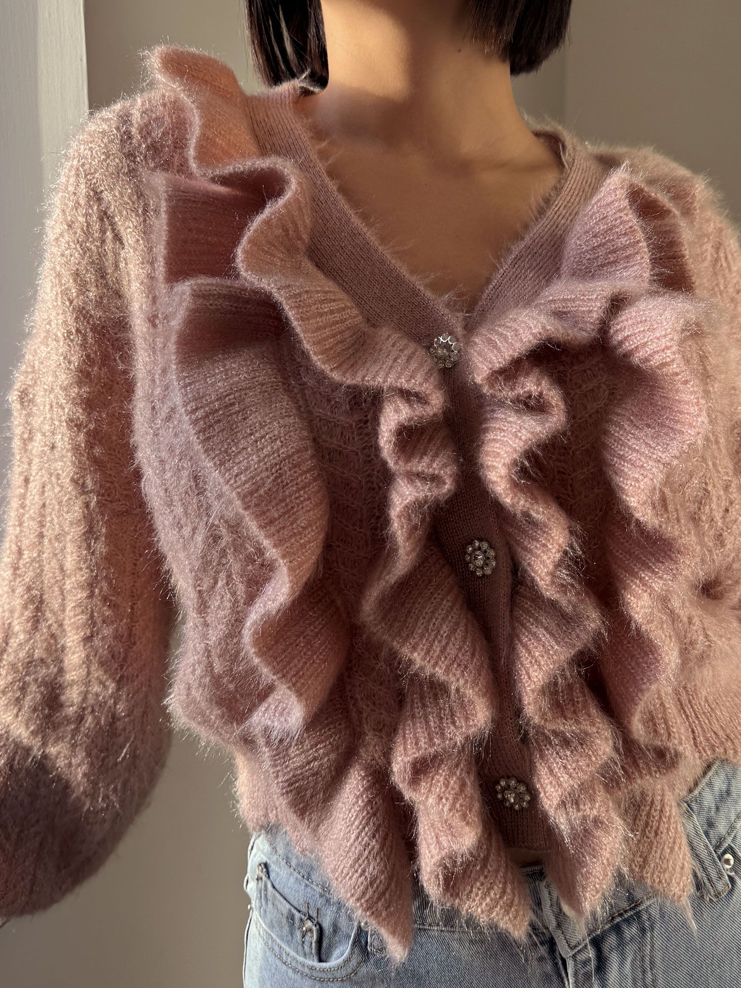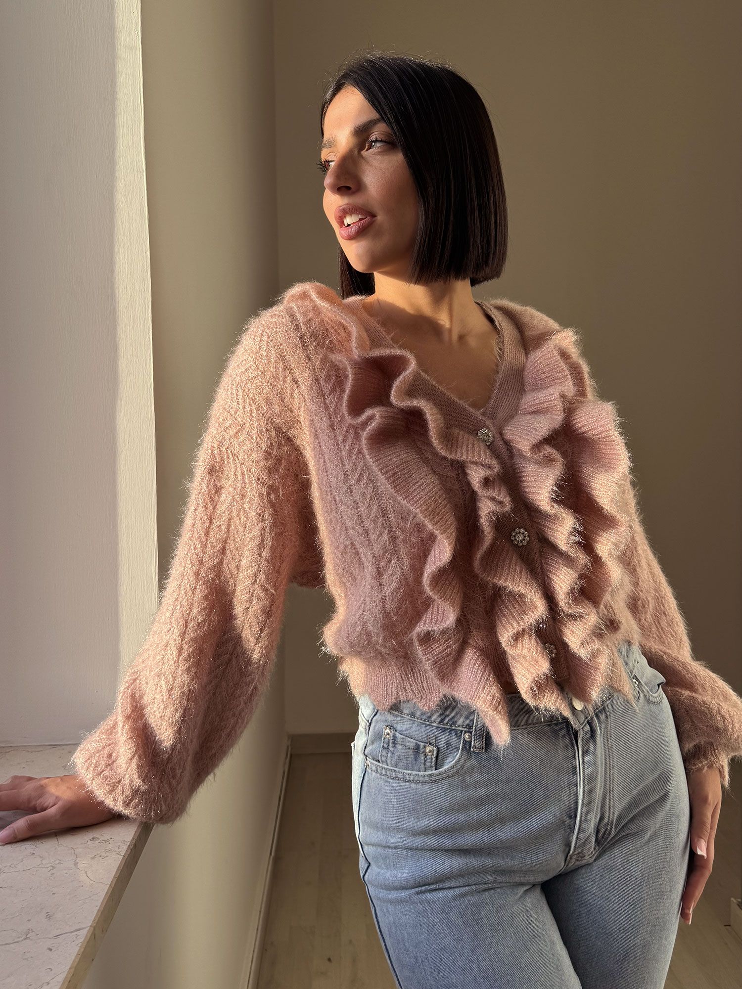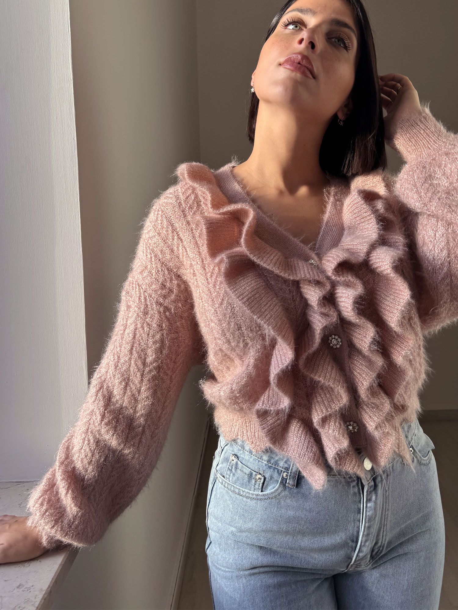 CARDIGAN CON RUCHES ROSA ANTICO
