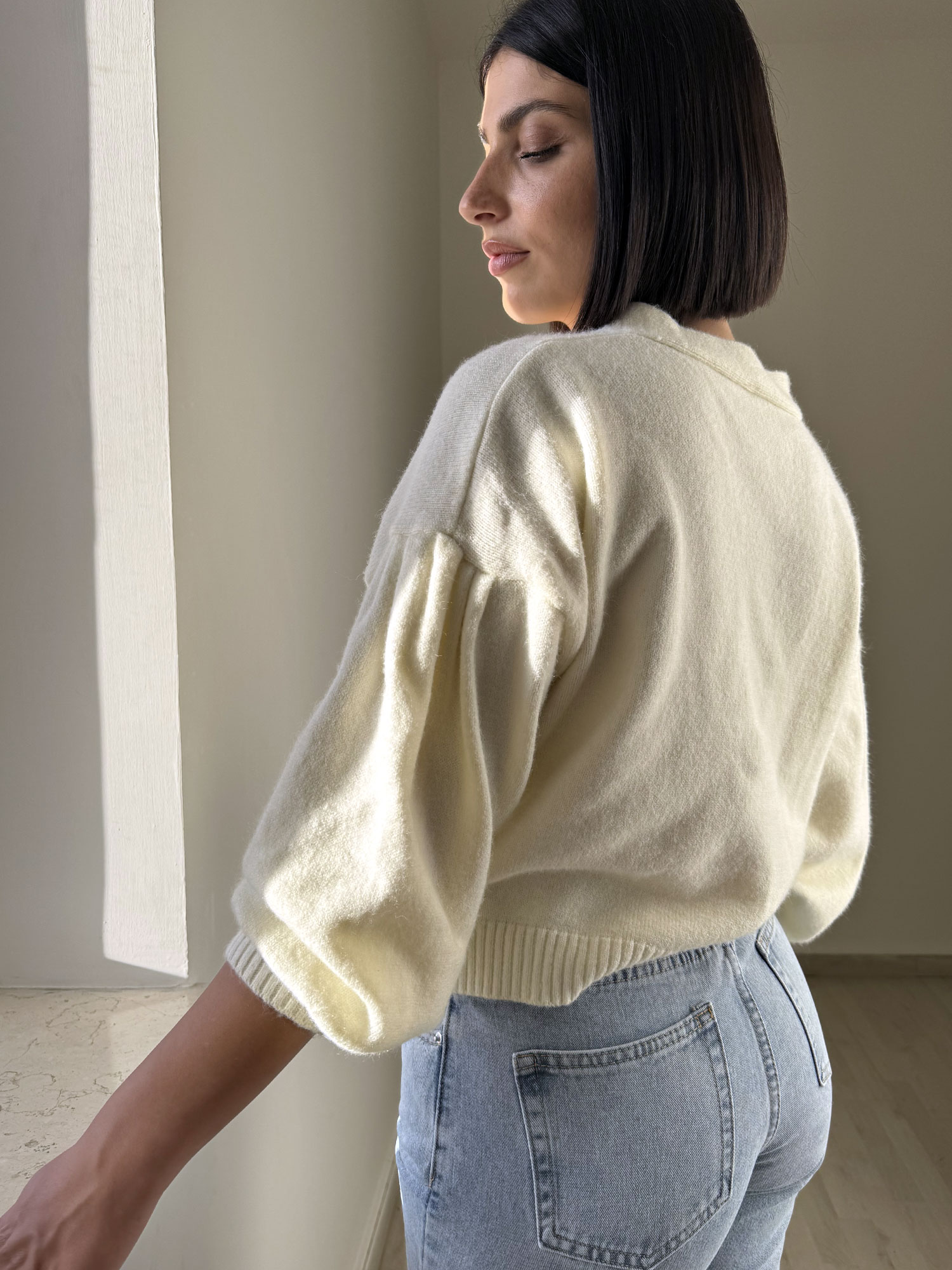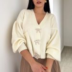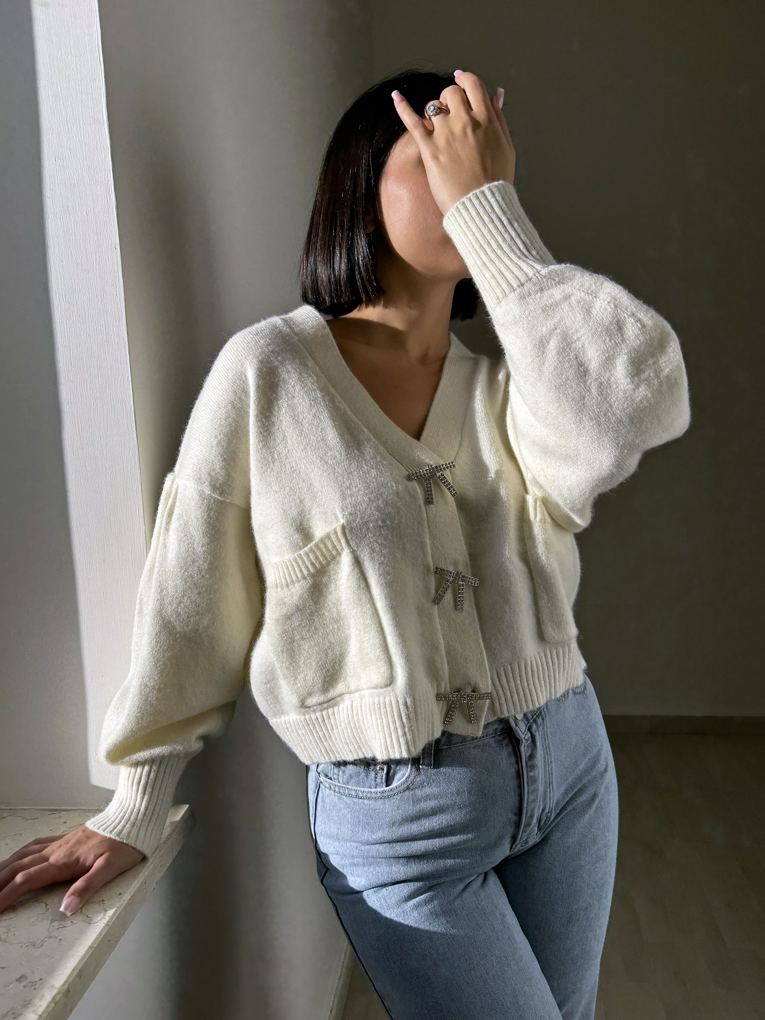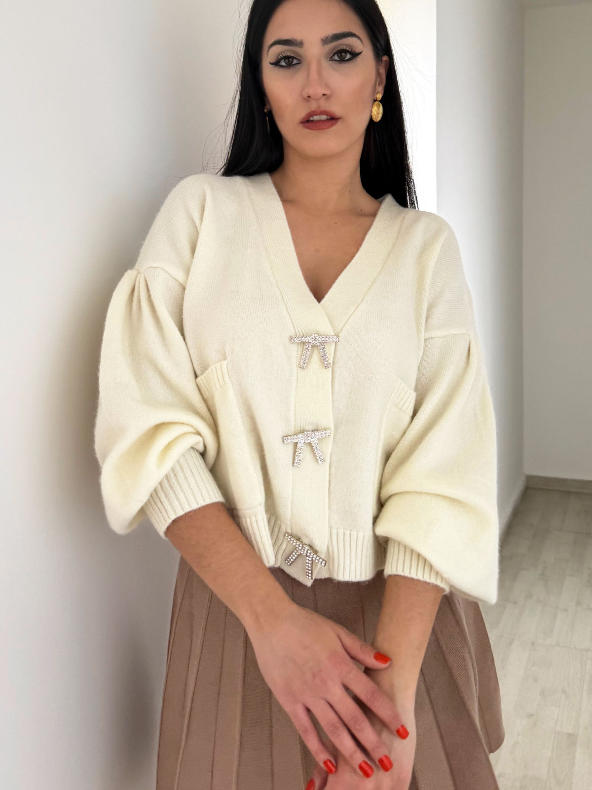 CARDIGAN PANNA CON FIOCCHI GIOIELLO