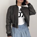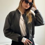 giubbotto similpelle over con fasce eslastiche a costrine sulle estremità.