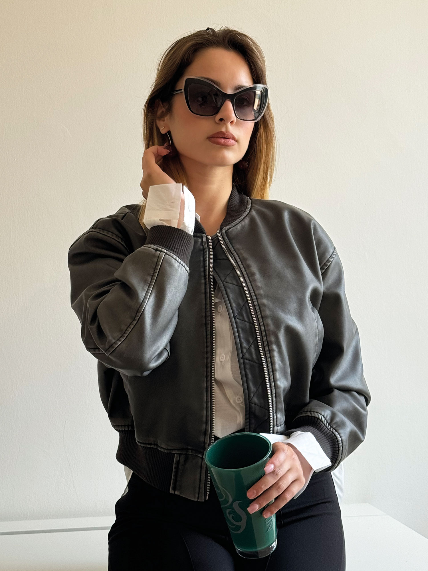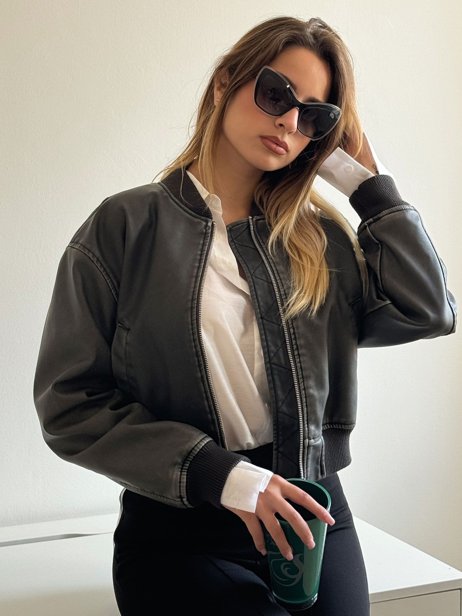 GIUBBOTTO OVER IN SIMILPELLE NERO