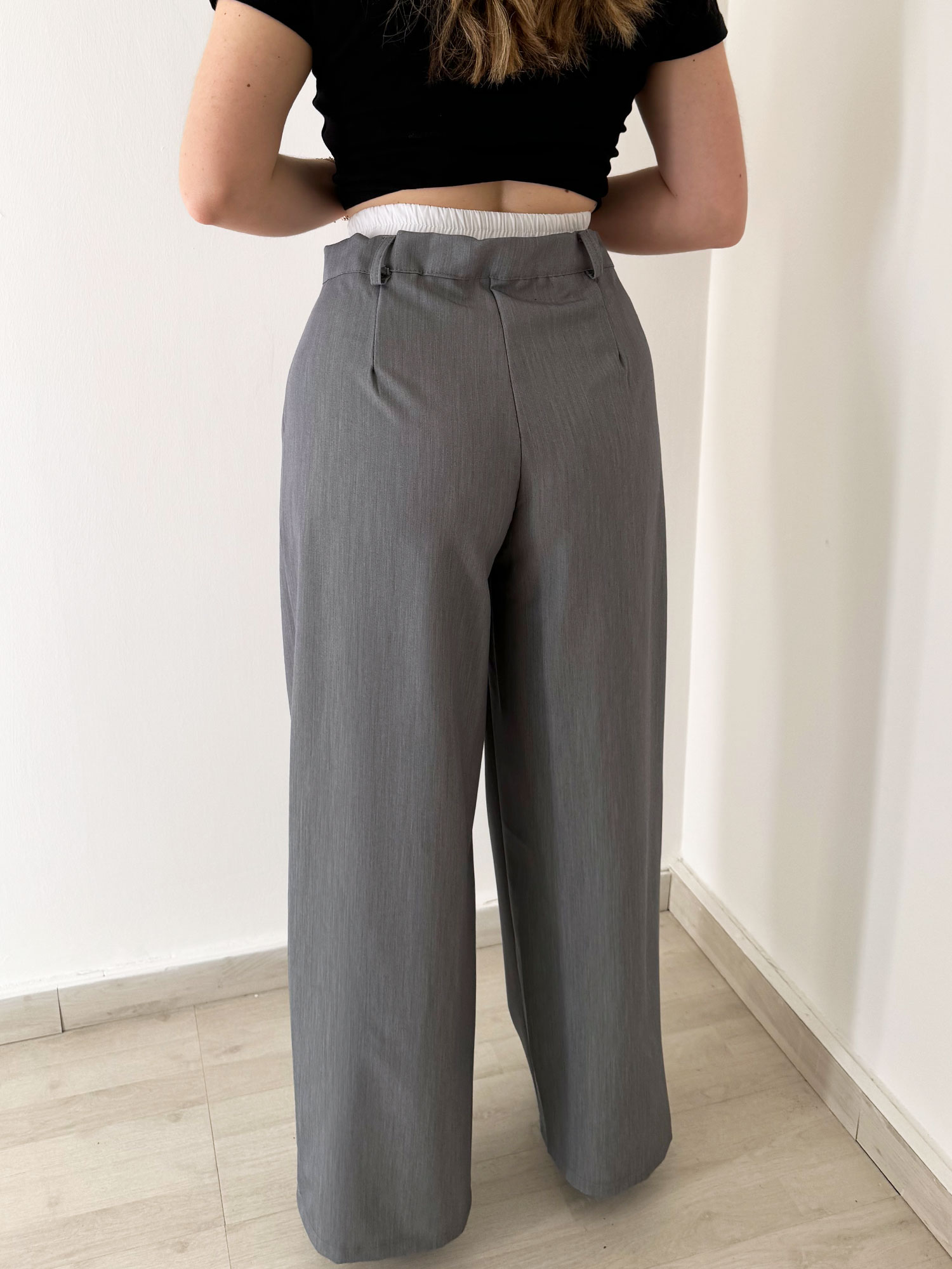 PANTALONE GRIGIO CON ELASTICO ARRICCIATO BIANCO