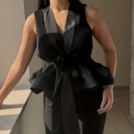 Questo top nero senza maniche è perfetto per aggiungere un tocco di eleganza al tuo guardaroba. Realizzato in tessuto leggero e plissettato, presenta un design sofisticato che valorizza la figura. Lo scollo a V profondo esalta il décolleté, mentre il fiocco decorativo in vita aggiunge un dettaglio romantico e femminile. La vestibilità è morbida e comoda, ideale per essere indossato sia in occasioni formali che in contesti più casual. Abbinato a pantaloni o gonne, questo top diventa un capo versatile e chic per ogni occasione.